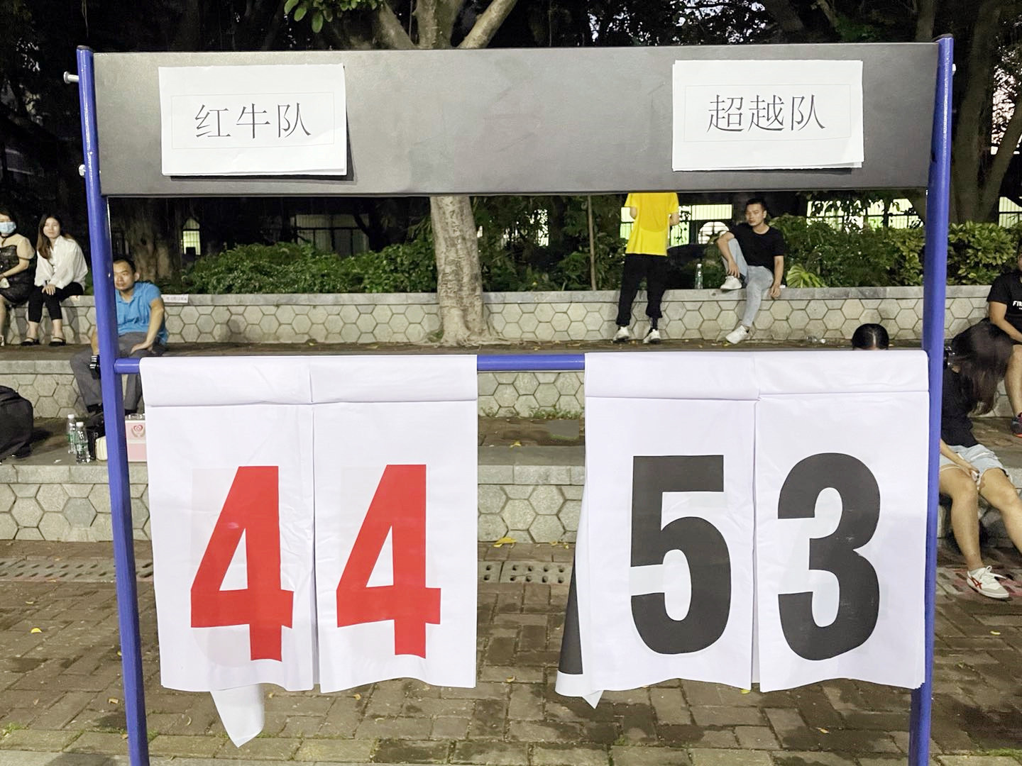 篮球赛上赛季首先上场的两支队伍是神剑队PK超越队,猛男靓女们各显神通,齐心协力,勇夺高分,最终神剑队以45:44一分之差的优势进入总决赛,超越队的队员们心里虽有不服,但也只能遗憾止步冠亚军争夺战门外。